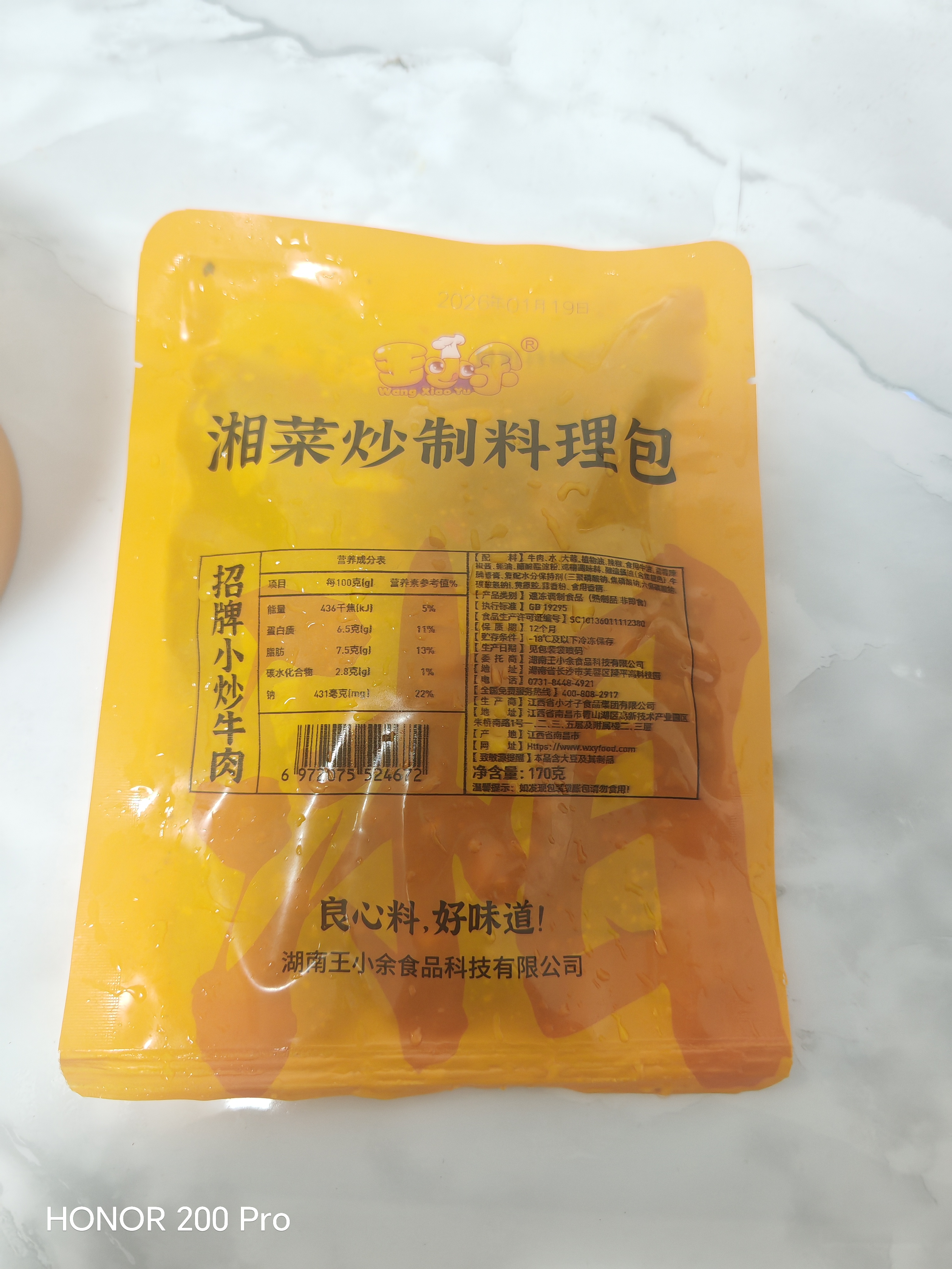 因为它不需要像小炒牛肉那样打造出一种嫩滑肉质的口感,所以不需要添加保水剂。它的配料表极其干净,除了鸭肉以外全都是家庭厨房常见的调味料,绝对健康。