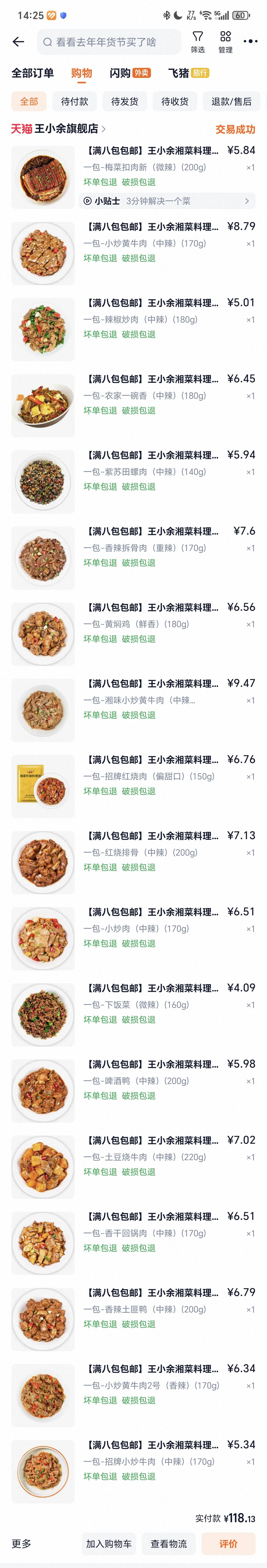 本人吃湘菜比较多,目前看了一下淘宝上的商品,王小余家的湘菜产品是最多的,就从这一家开始吃。